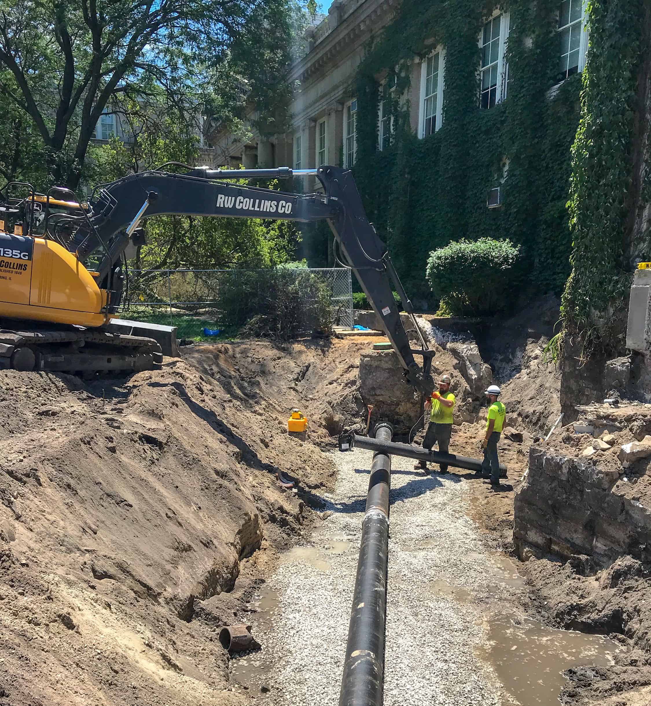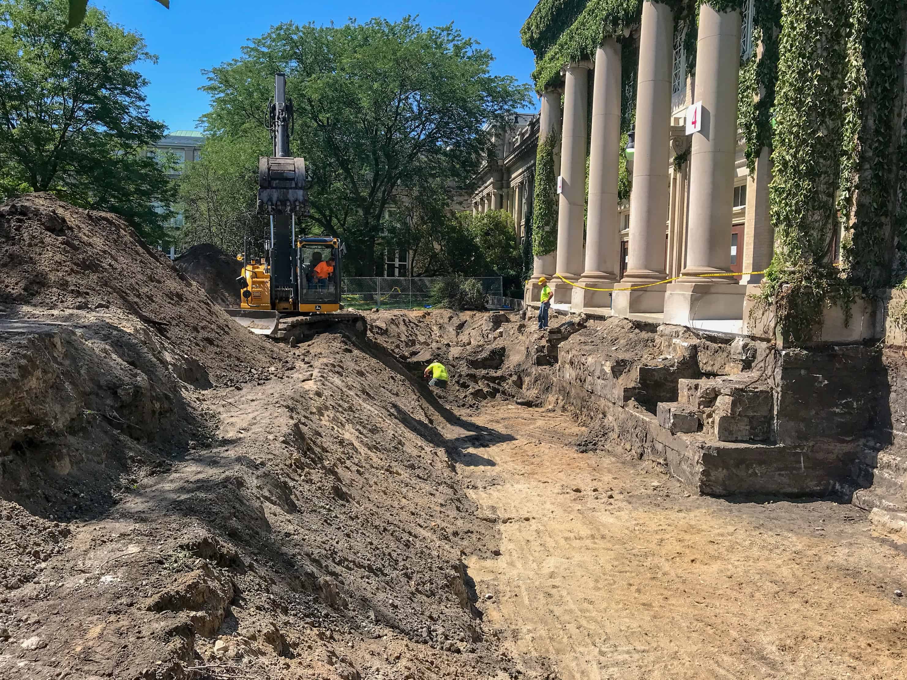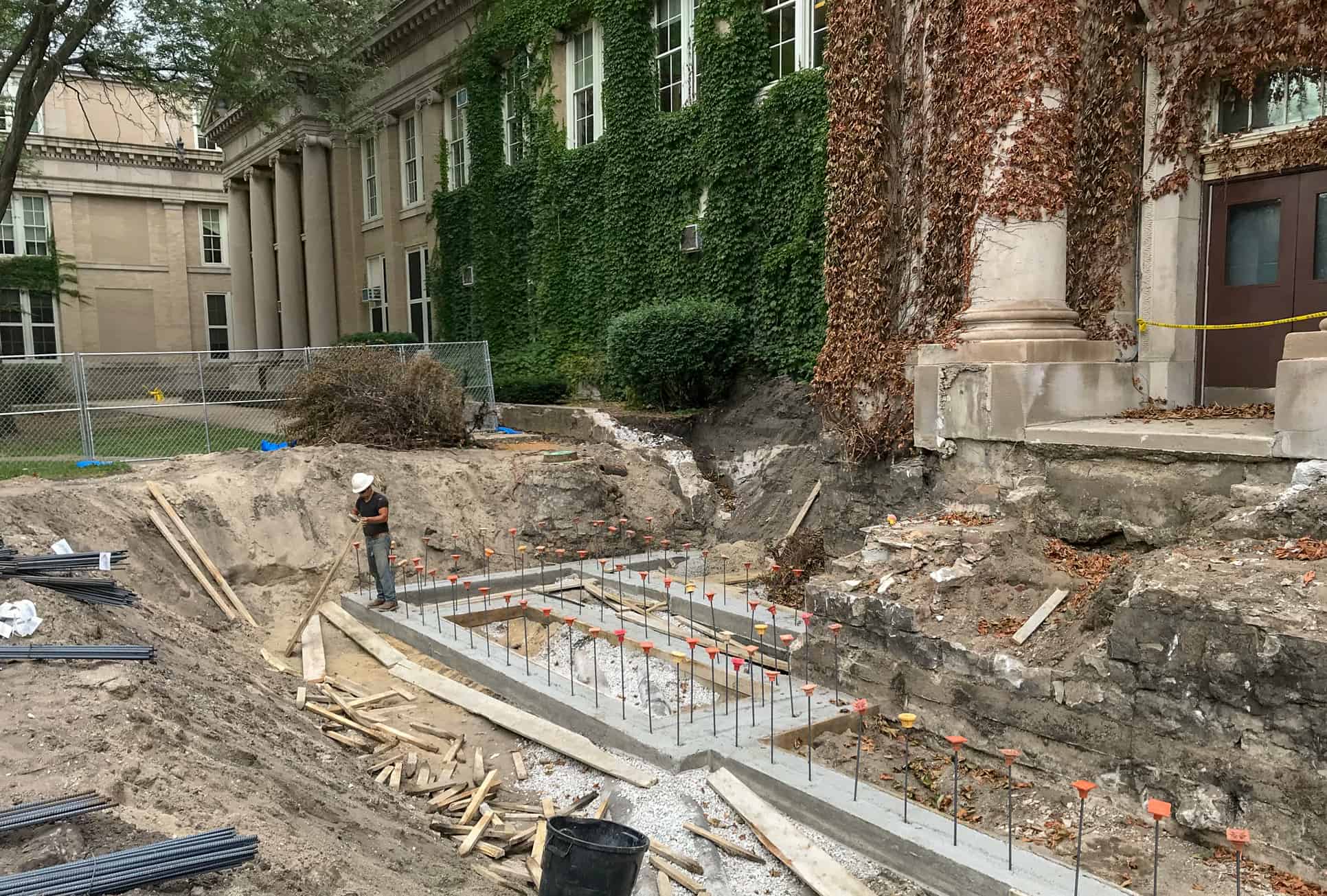 The project totaled 120-man hours, 200 cubic yards of concrete removed, 200 cubic yards of soil remediated, and 224 tons of back-fill replaced. Due to the historical significance of the building, the 105-year-old limestone, and the confined work area, our crews worked diligently to complete the project safely and on time.