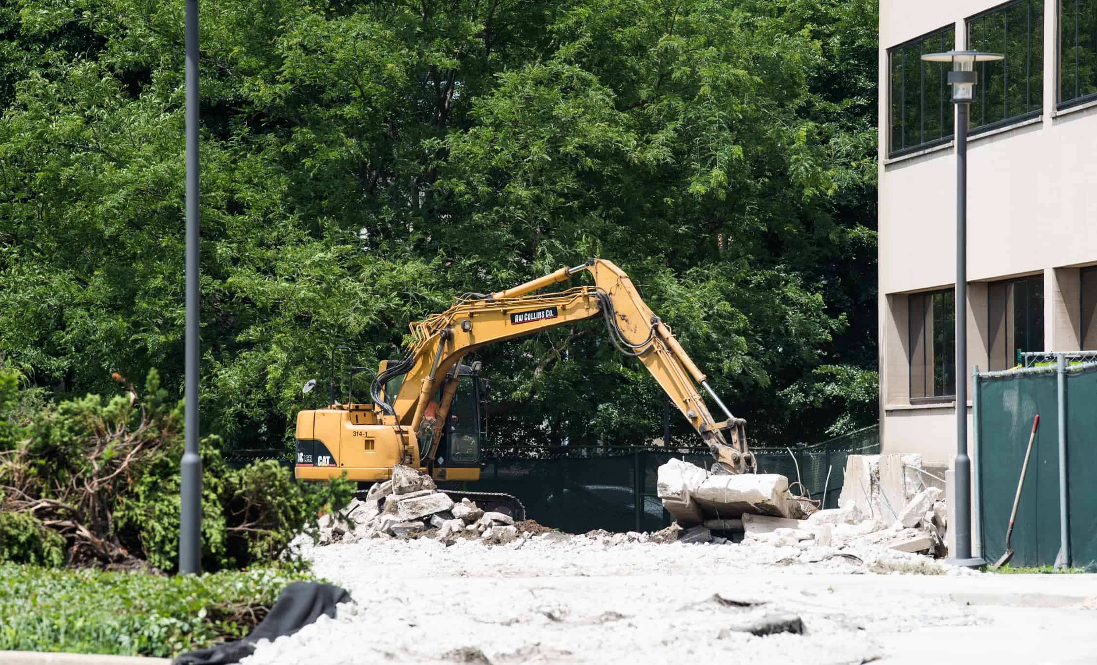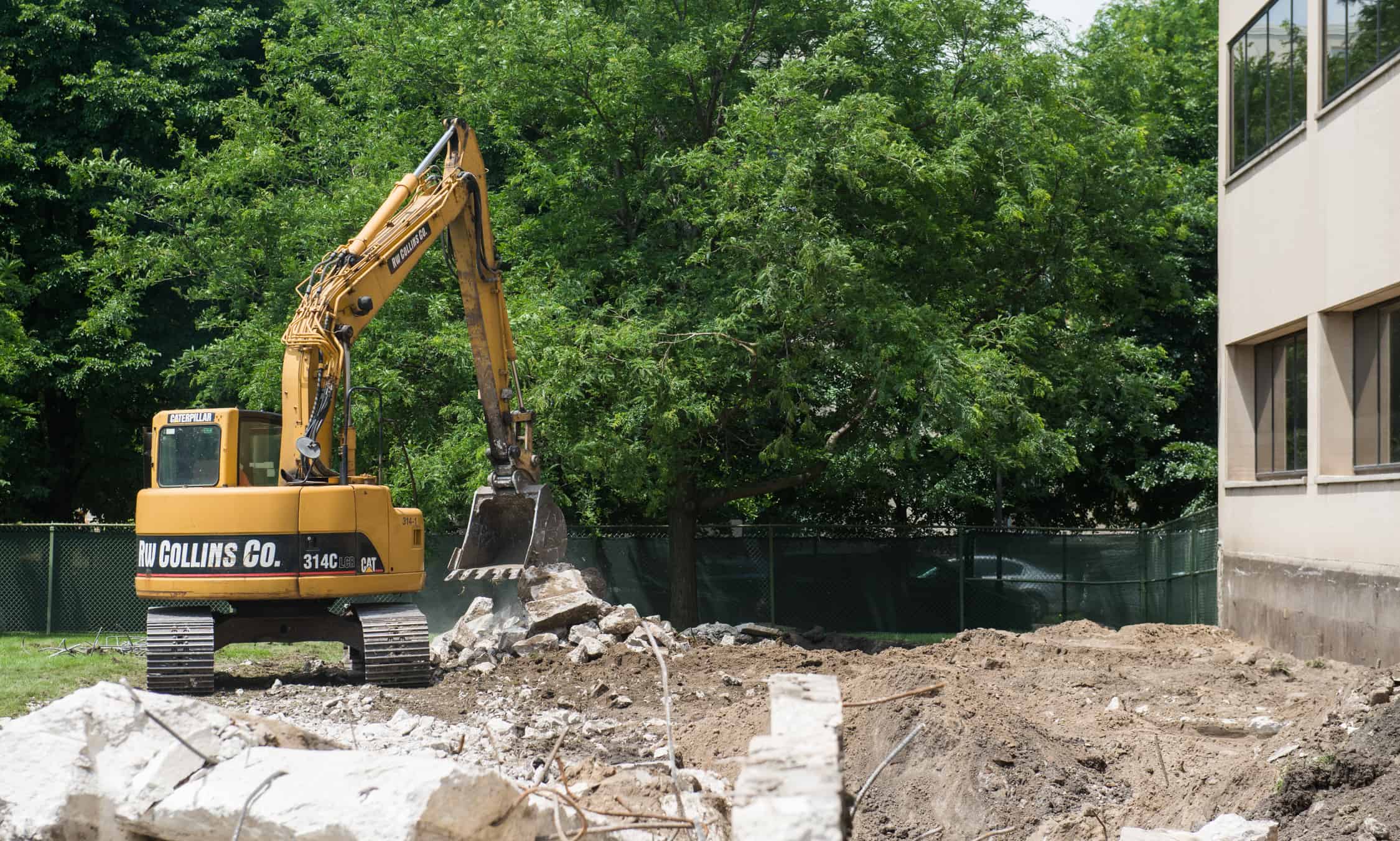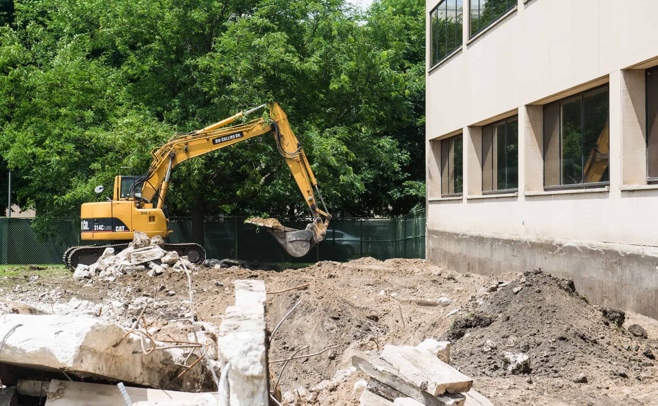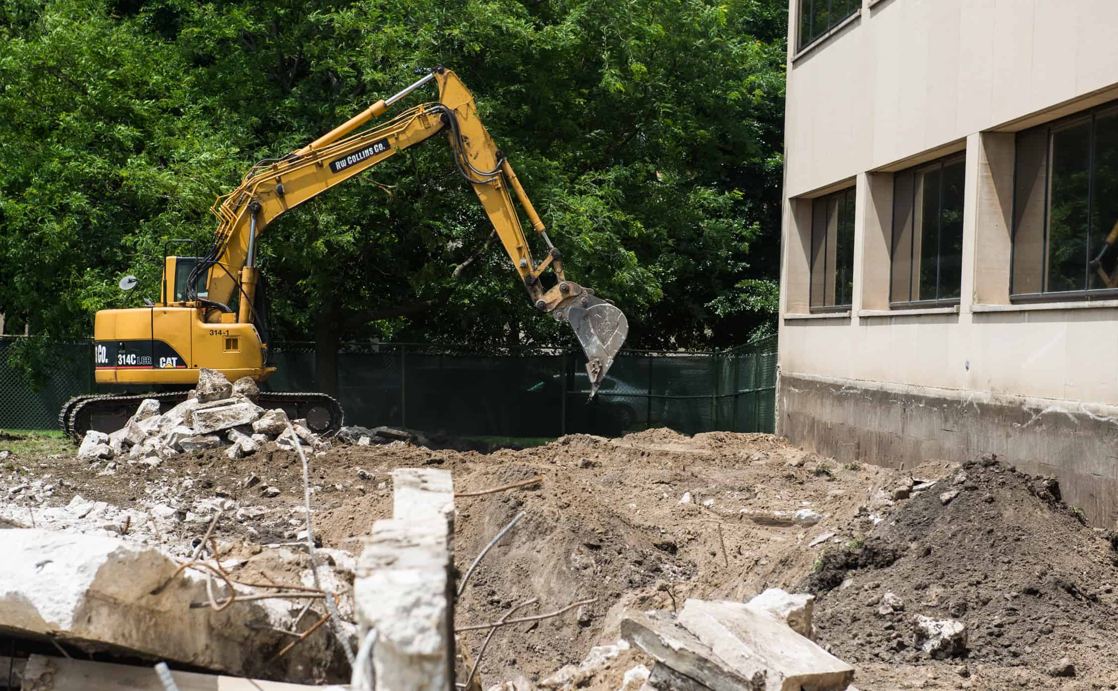 As you can see in the pictures below, there was an existing retaining wall filled with black dirt where the new student residences will stand. After our operator broke out the concrete retaining wall and footings using a Caterpillar 314 with a breaker-attachment, we excavated and hauled 400 cubic yards of black dirt. With the old retaining wall removed, the electrical substation can now be relocated so that the new residences, ranging in height from 4-14 stories, can begin construction.